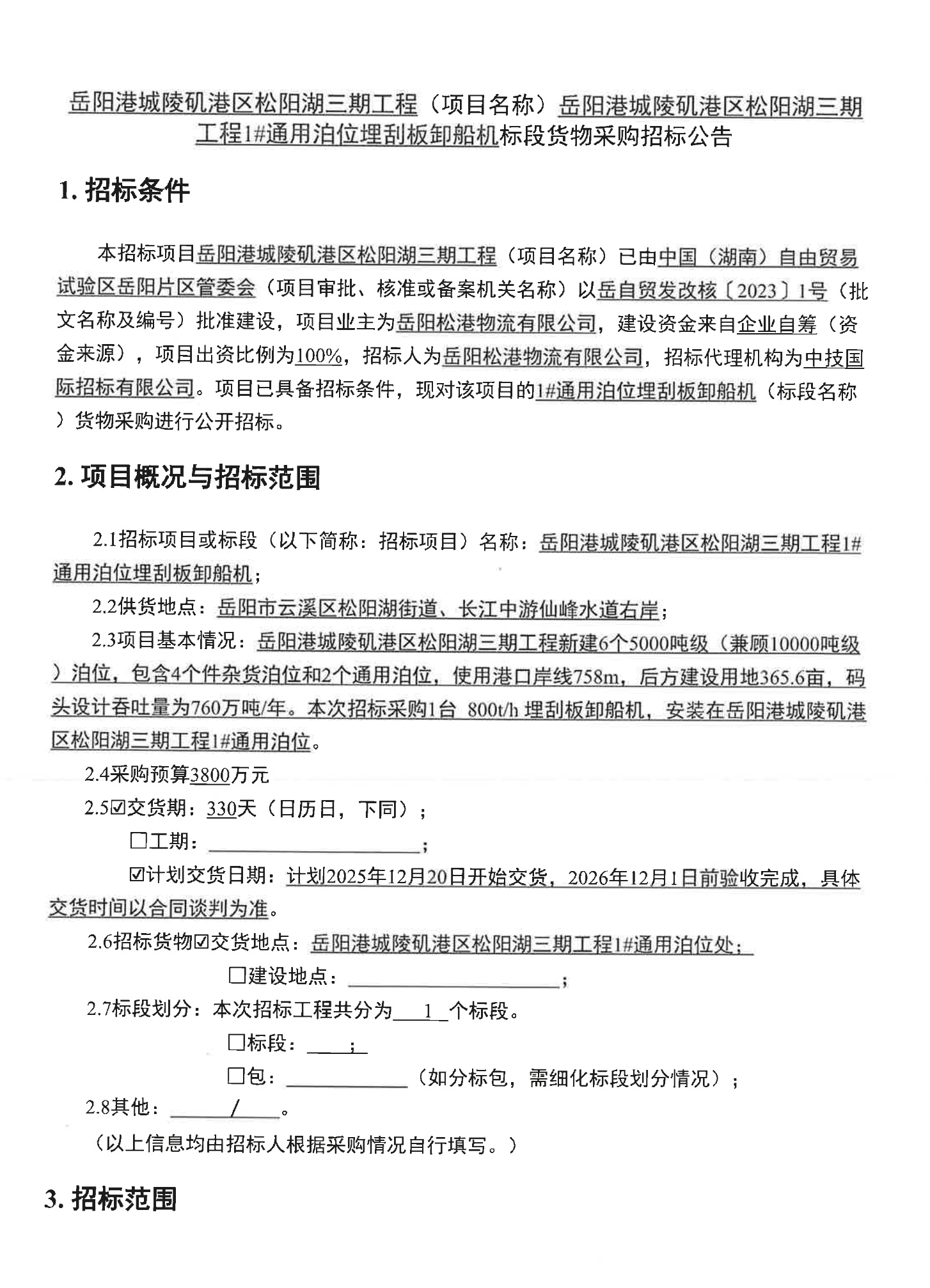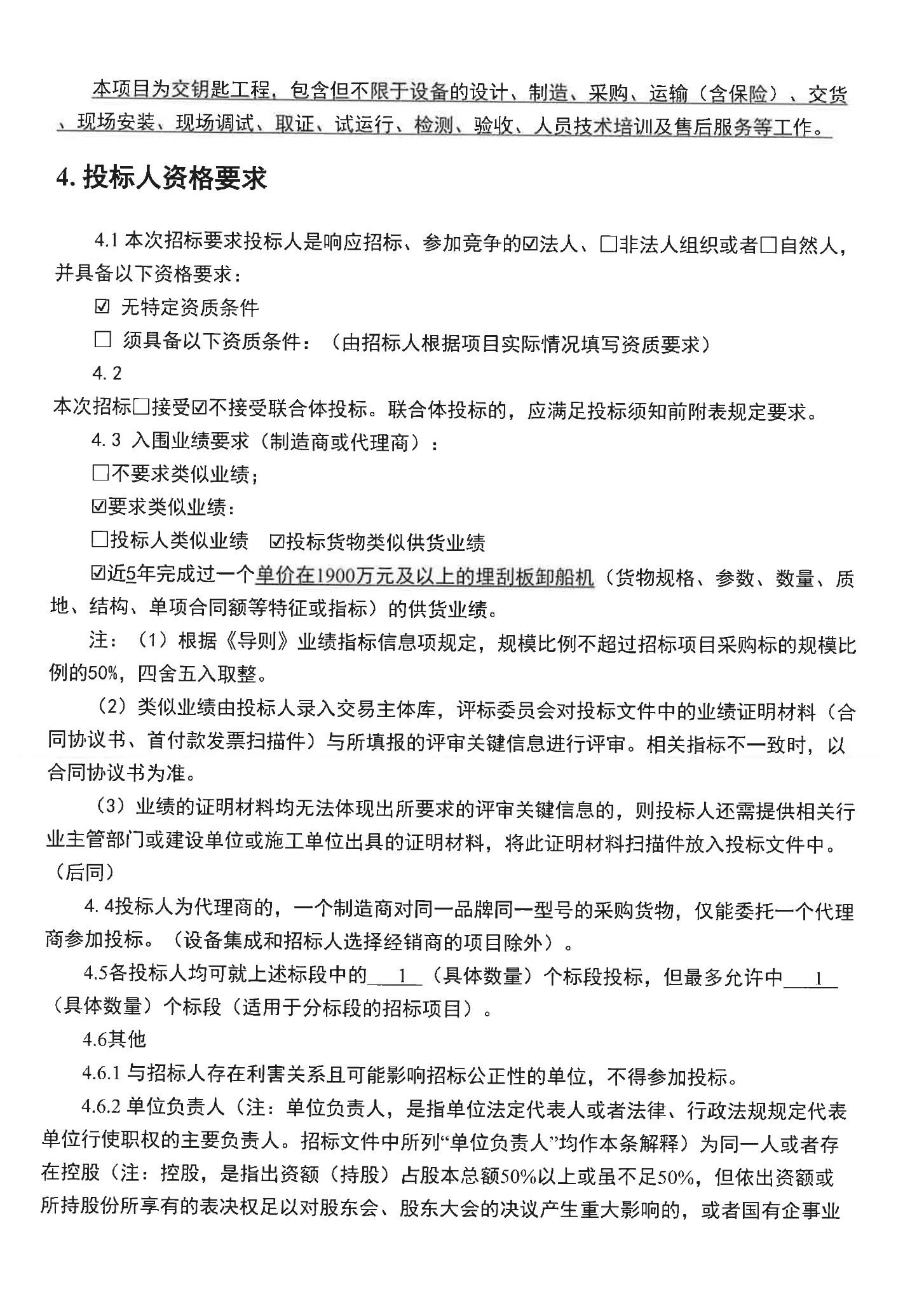 800t/h 埋刮板卸船机标段货物采购招标公告