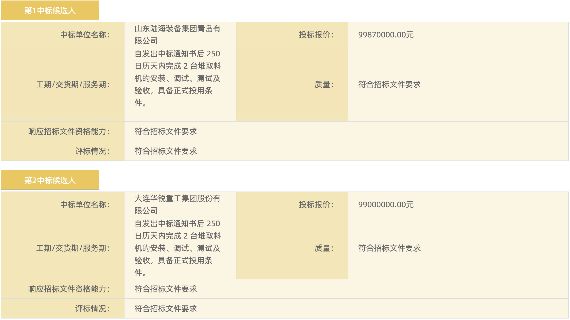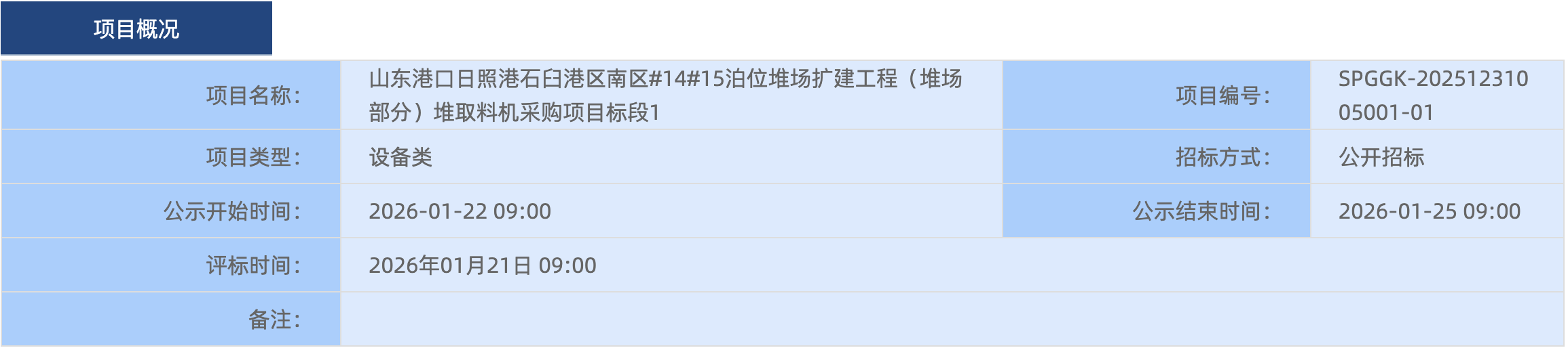 堆场扩建工程堆取料机采购项目标段1中标 候选人公示