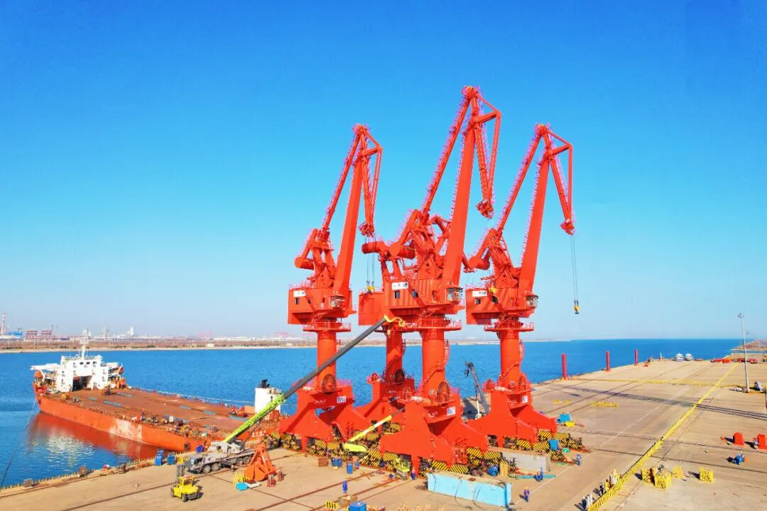 4月9日,装载最后一批门机的驳船鸣笛离港,装备集团青岛公司承制的唐山港6台门机设备顺利发运。这是装备集团首次进入河北省市场的重点项目,项目团队从设计、制造、总装调试到装船发运各环节均以高标准严格把控,为后续深耕该区域市场奠定基础。