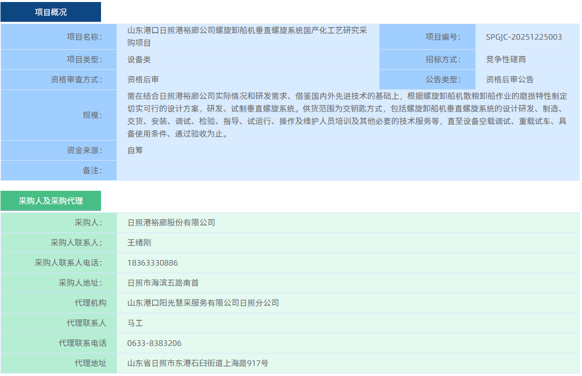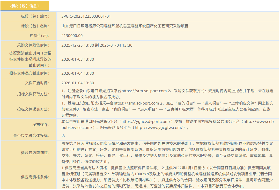 螺旋卸船机垂直螺旋系统国产化工艺研究采购项目 招标公告